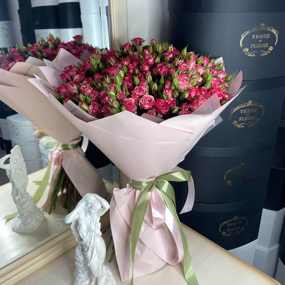 Самые свежие кустовые розы мы собираем специально для Вас. Каждое утро у нас приходят новые поставки цветов. Наши флористы готовы Вас радовать круглосуточно 24/7.