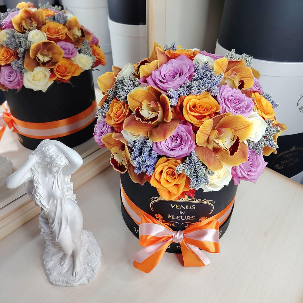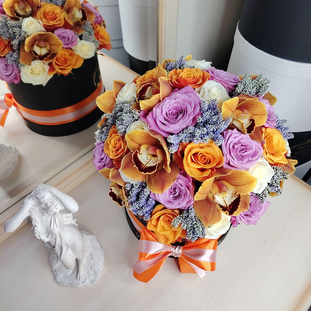Букеты в шляпной коробке навсегда останутся классикой и альтернативой другим букетам.