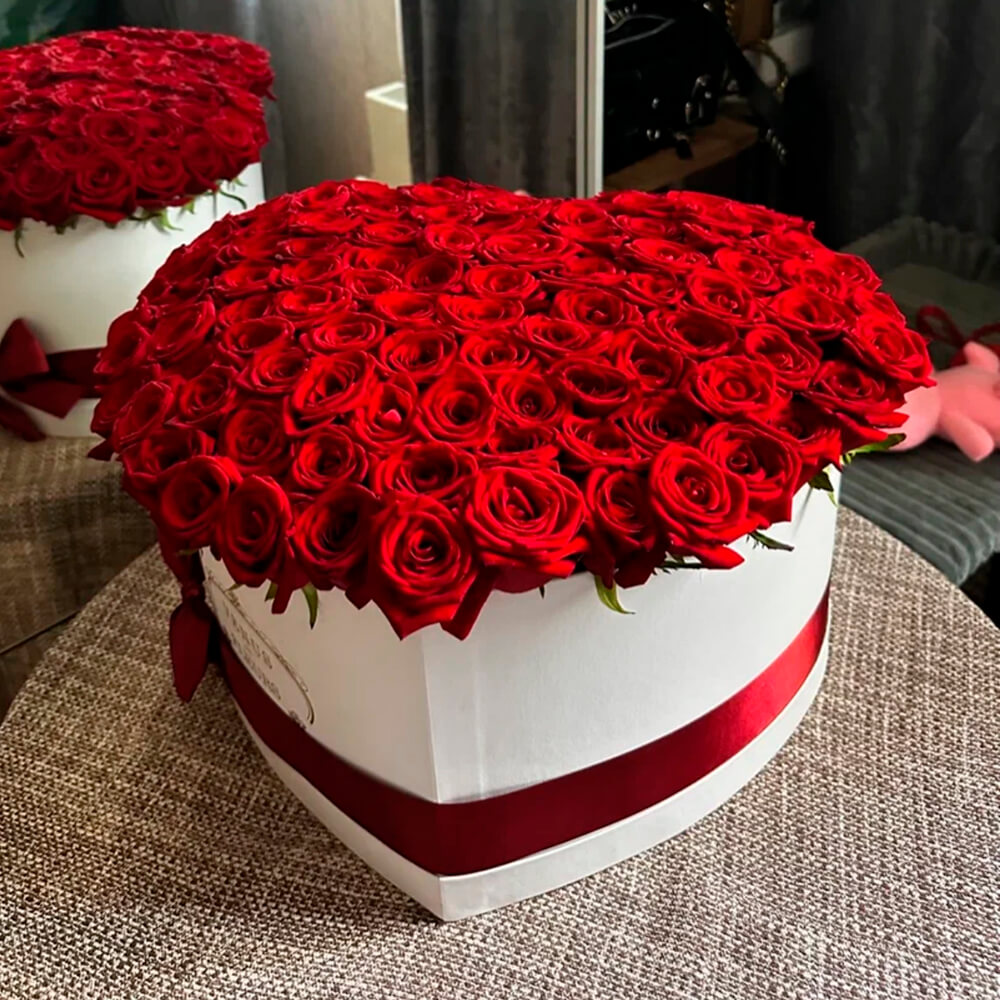 Розы в коробке в форме сердца подарят Вашей любимой восторг и яркие эмоции. Удивите ее необыкновенным подарком.